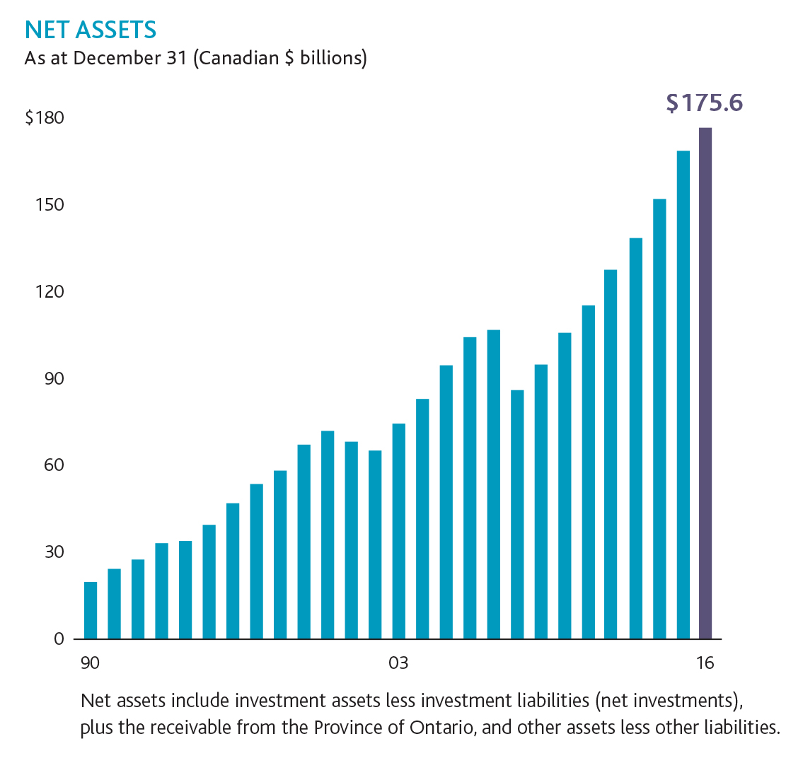 Ontario Teachers' Pension Plan (Ontario Teachers') today announced it was 105% funded as of January 1, 2017, its fourth consecutive year of being fully funded. Net assets rose by $4.2 billion year-over-year in 2016 to $175.6 billion. The total-fund rate of return of 4.2% exceeded the benchmark of 3.5%, resulting in $1.3 billion in value-add.